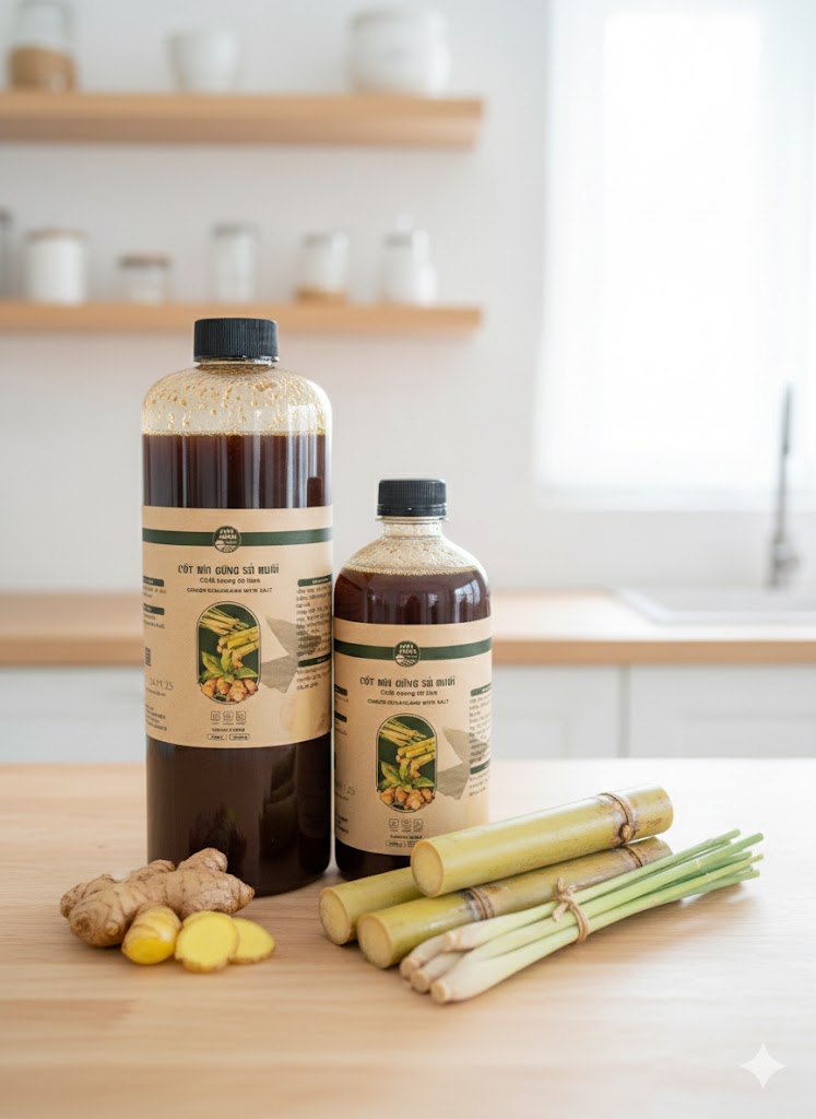 Mía gừng sả muối, Thành phần 100% từ nguyên liệu tự nhiên Mía thả tự nhiên Sả thẻ bản địa Gừng sẻ ruột vàng thuần chủng Muối biển thô